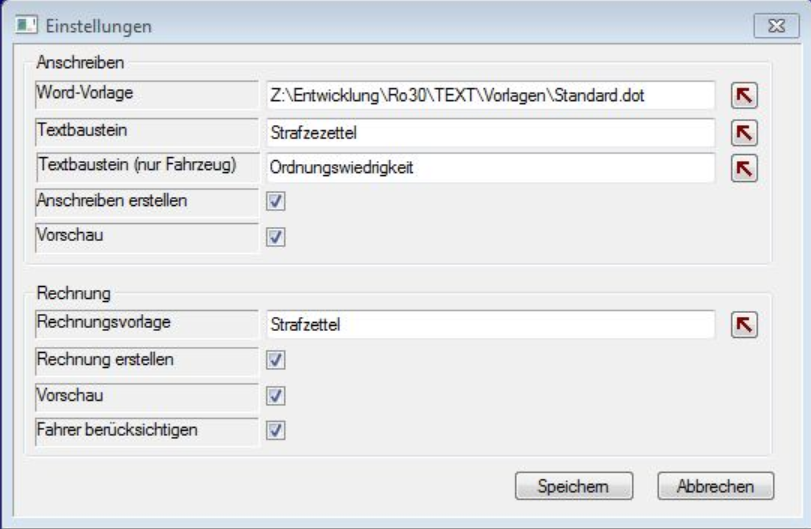Um ein Anschreiben an das Ordnungsamt zu erstellen, müssen unter Parameter >Textbausteine Korrespondenz die entsprechenden Textbausteine erstellt werden. Die Namen müssen dann unter Textbaustein und Textbaustein (nur Fahrzeug) eingetragen werden.