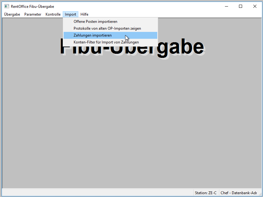 Wenn die Fibu-Schnittstelle freigeschaltet ist, kann darüber auch ein Import von Zahlungen stattfinden.