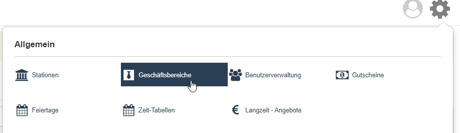 Definieren Sie zunächst in den Einstellungen den/die gewünschten Geschäftsbereich(e). Öffnen Sie im Einstellungsmenü den Punkt "Geschäftsbereiche".