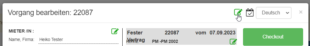 Bearbeiten Sie den Vorgang, dem Sie einen Geschäftsbereich zuweisen möchten. Klicken Sie dort auf das Icon zum Bearbeiten der Eigenschaften des Vorgangs.