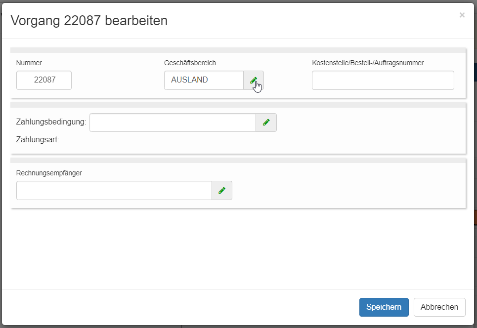 Weisen Sie den gewünschten Geschäftsbereich im Feld "Geschäftsbereich" zu.