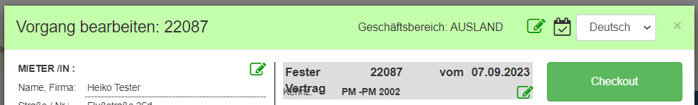 Speichern Sie die Eigenschaften. Die Kopfzeile des Vorgangs wird nun in der beim Geschäftsbereich hinterlegten Farbe angezeigt.