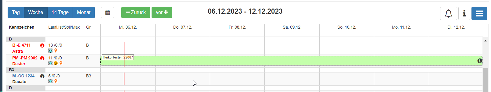 Ebenso wird der Vorgang in der Grafischen Disposition unabhängig vom Status in der Farbe angezeigt.
